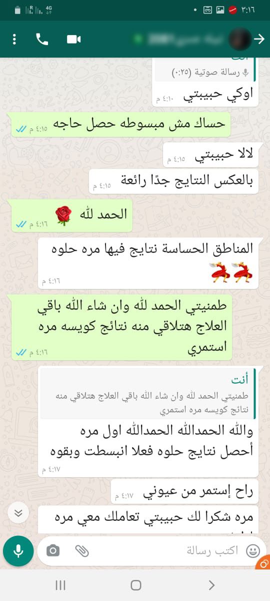 لان اصرارها و استمرارها علي الاستخدام و متابعتها مع الطبيبة يومياً حدث هذااااا الفارق الكبير في النتيجة