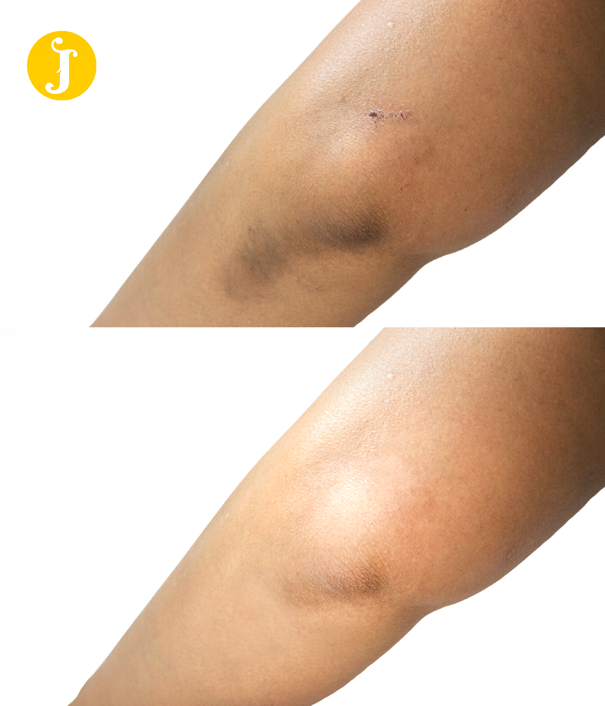 تخلصت من درجه و نصف كامله من الاسمرار و باقي لديها درجه واحده و تصبح المناطق السمراء لون بشرتها الطبيعية