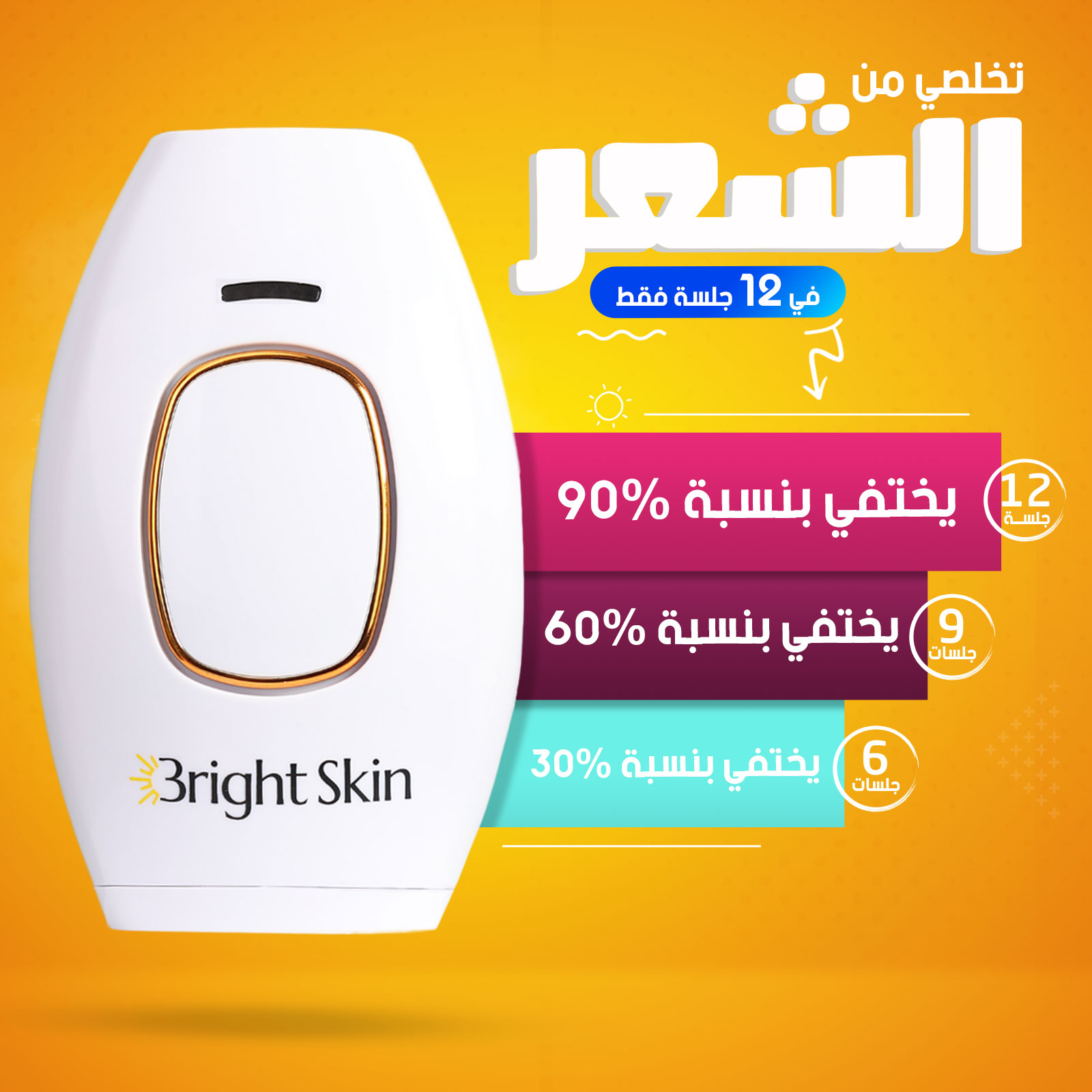 جهاز برايت سكين بيوقف نمو الشعر بعد الجلسة ال 12 اذا كان درجة لون البشرة والشعر الدرجة الامثل للجهاز.