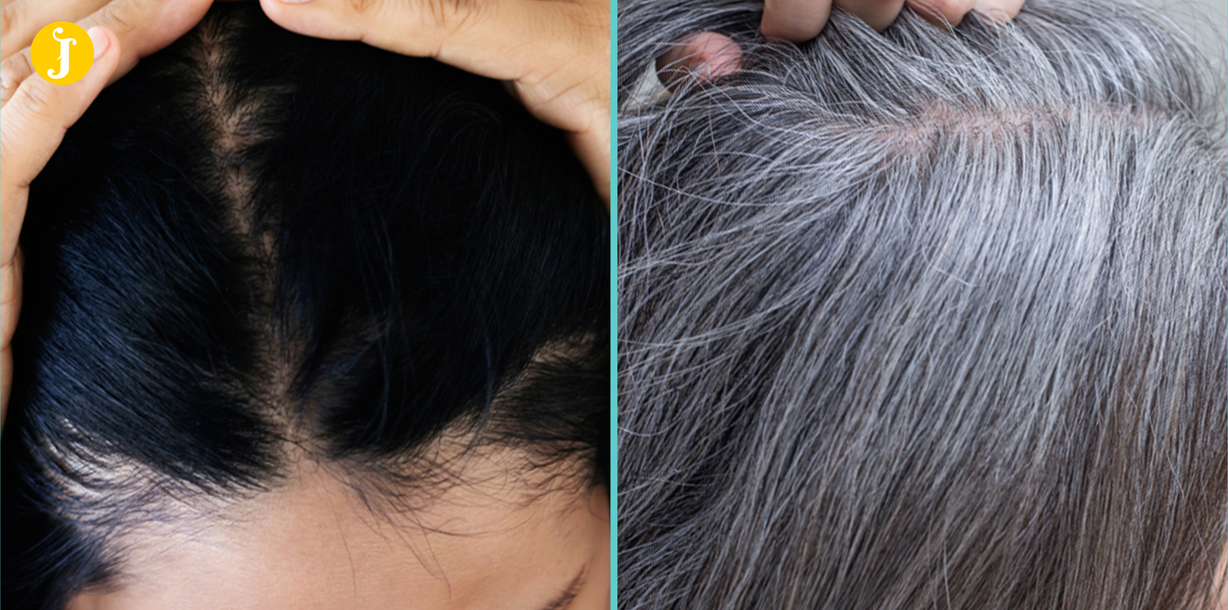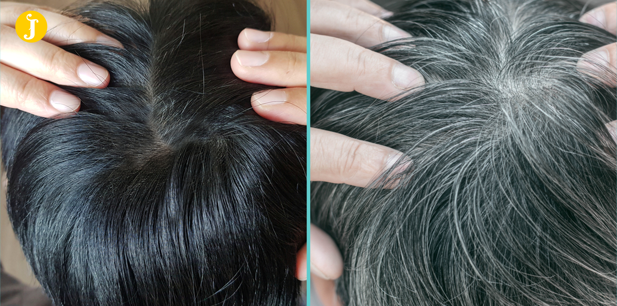ما بيفرق الشعر الأبيض بين رجل أو إمرأة فهو احدي العلامات المزعجة و الغير مستحبة لبداية التقدم بالعمر و الكبر.