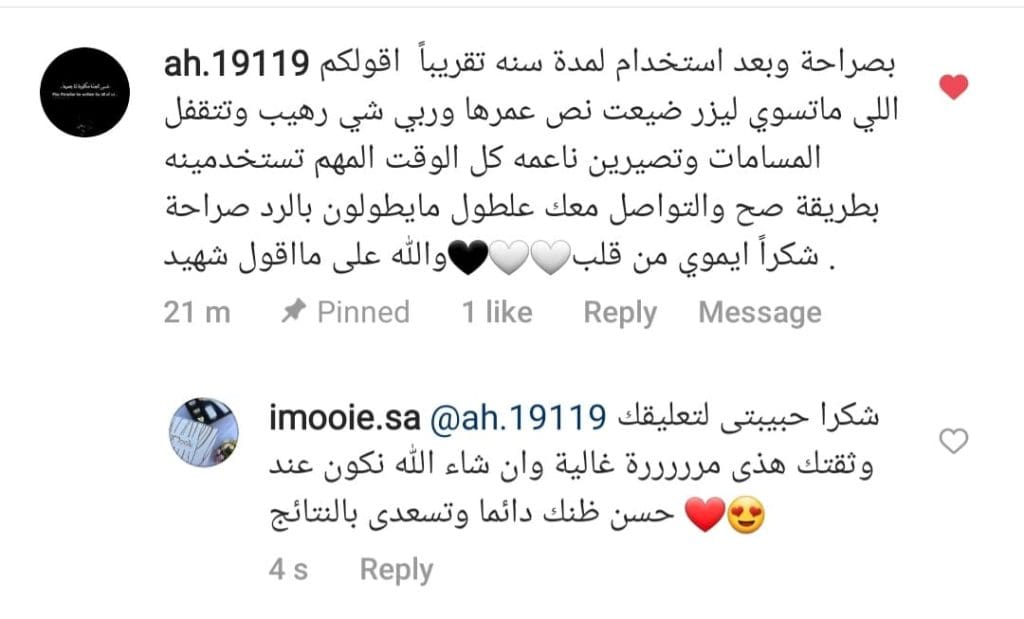 📌متابعة خبيرة الليزر مع العملاء سهلت عليهم الاستخدام وكل البنات اللي تابعون مع الخبيرة يمدحون في ذوقها وتعاملها