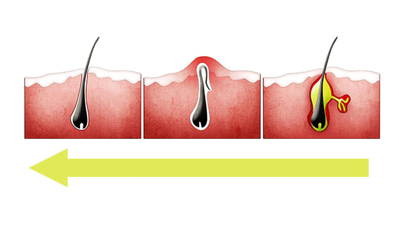 ويظهر بسبب جفاف الجلد وتراكم الجلد الميت وبعض طرق ازالة الشعر والعادات الخاطئة واستخدام علاجات مجهول مصدرها.