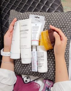 خبرتني انها تداوم مع طبيبة خاصة و بتسوي العناية الكاملها لجمسها و بشرتها بمنزلها عن طريق هذه العلاجات المتطوره 💁 وتقولي انها افضل العلاجات الي استخدمها عل جسمي.